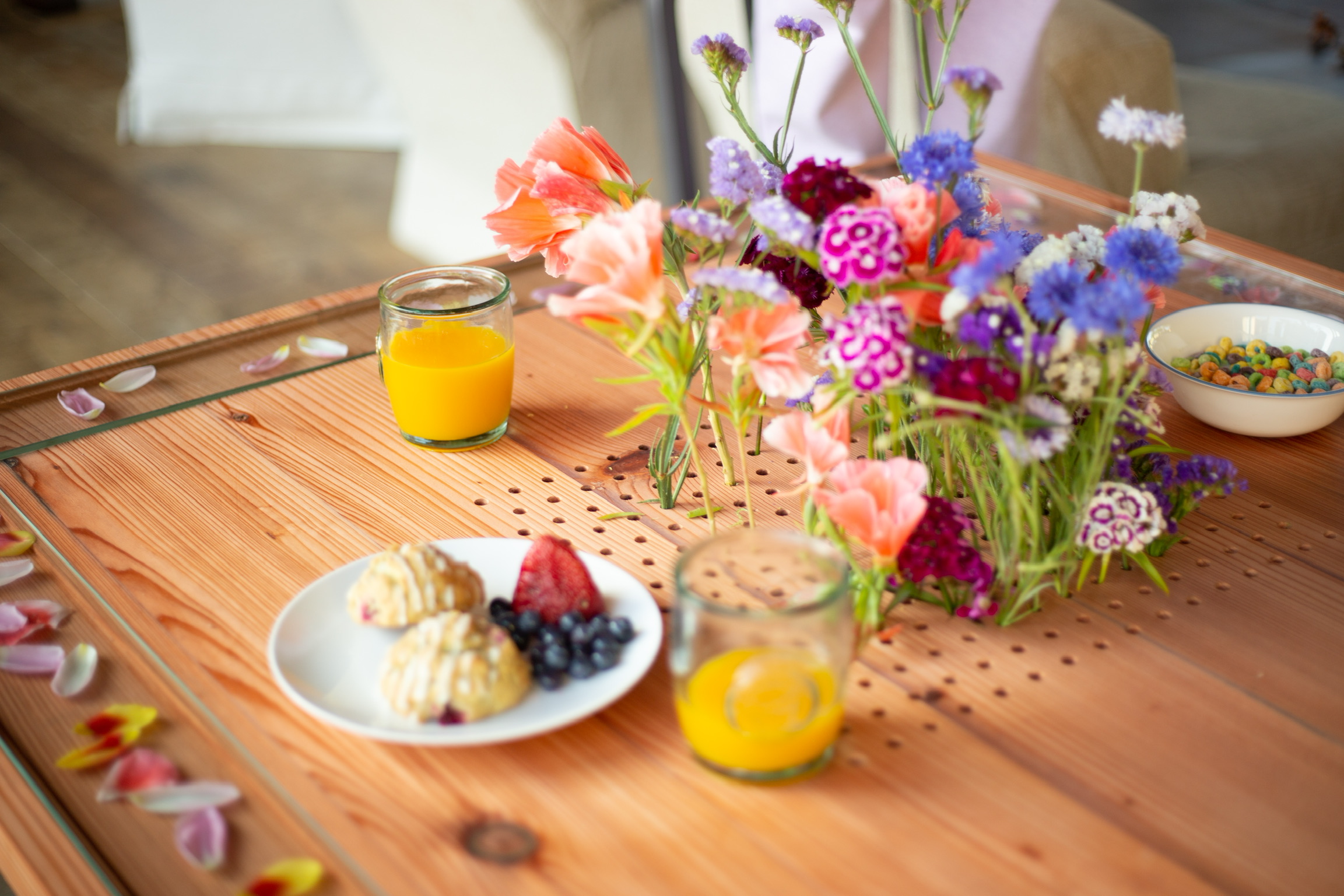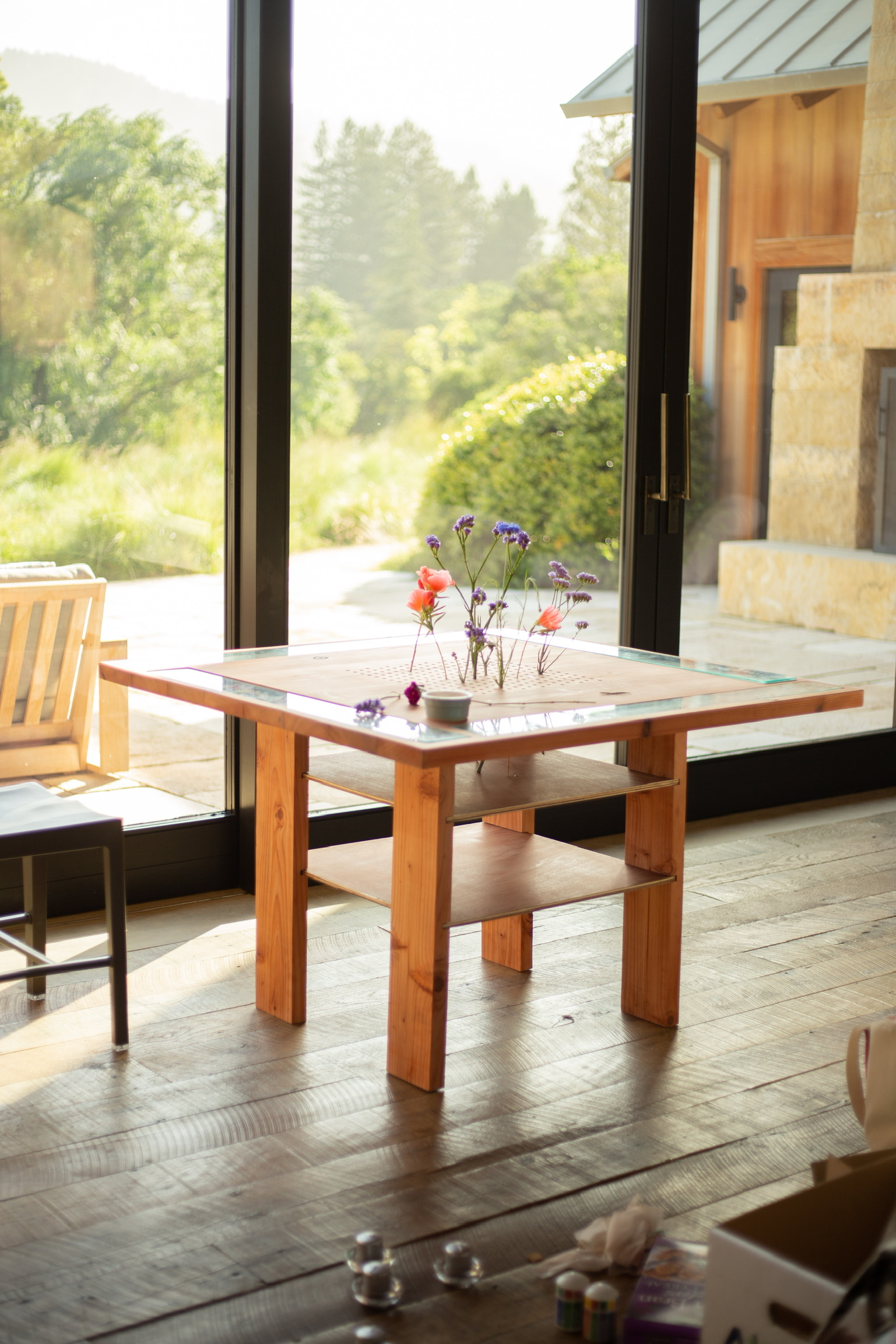 After 6 months of ideating and prototyping, we developed Living Table. It is a 4-person dining table that celebrates both the present and past through the decoration of the table. On the tabletop, there are through-holes to place flowers and a vase directly underneath to keep them watered. On the table’s borders, there are recessed pockets covered by glass panels to place flowers that were once the centerpiece, photos from a dinner party with friends, and whatever items honor a memory or just feels right.